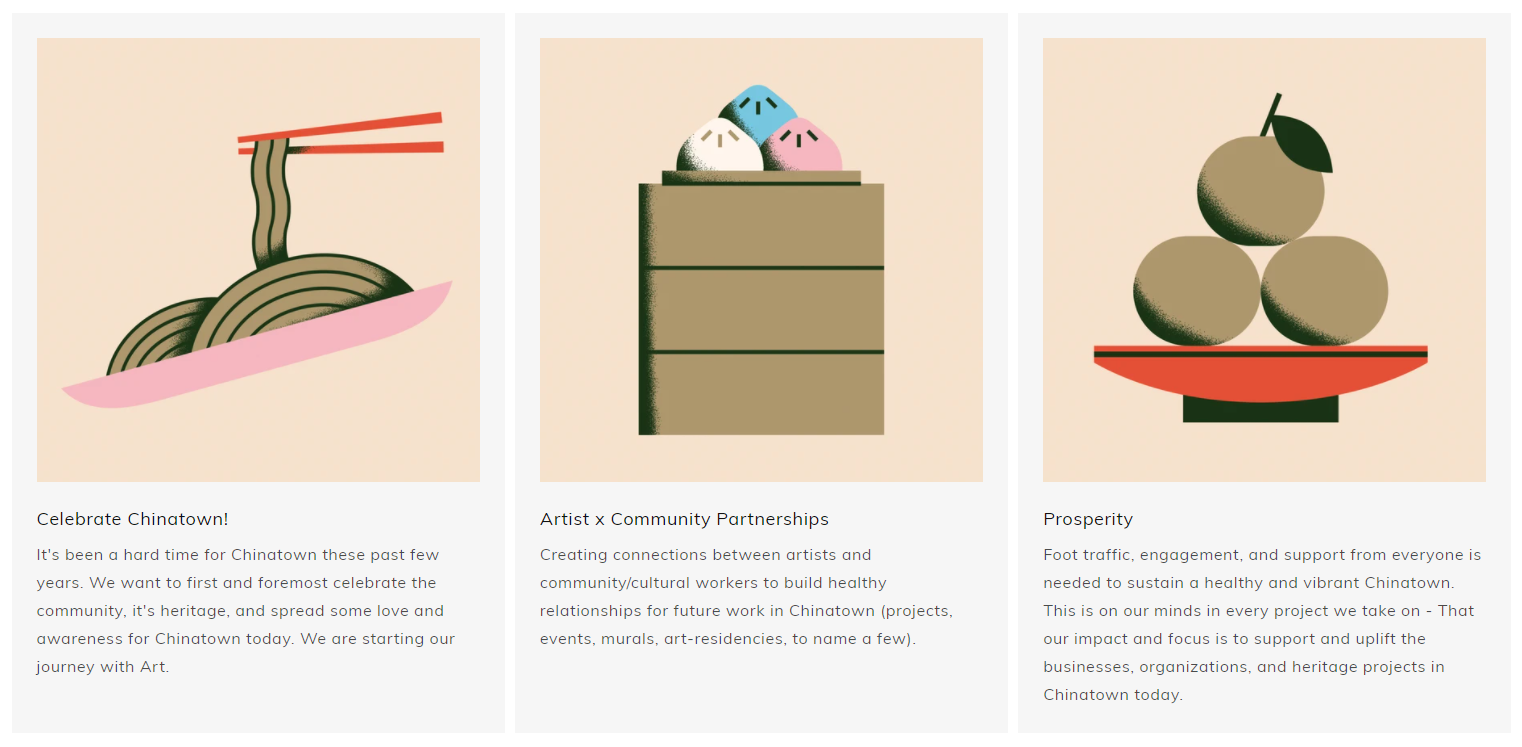 *100% proceeds means all sales, minus credit card fees (our organizers volunteer their time). Art and merchandise costs for the 2023 collection were funded by the 2021 Chinatown Greetings project.